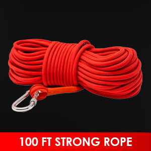 2000lb Double Sided Magnet Fishing Kit w/ 100ft Nylon Rope, Carabiner & Gloves